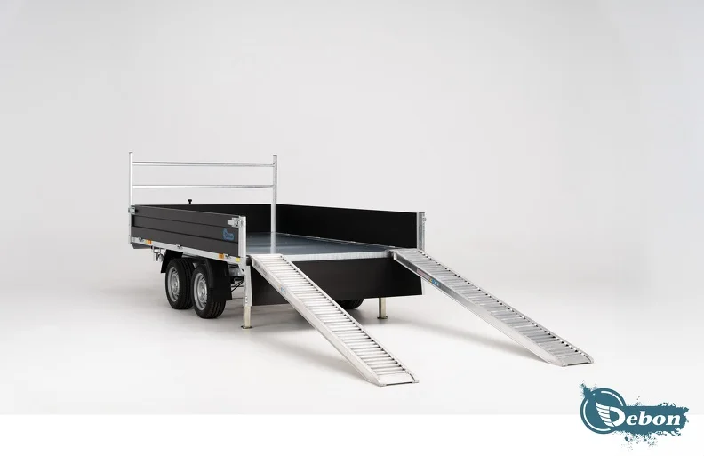 Der DEBON PW3.3 Black Edition Dreiseitenkipper ist für anspruchsvolle Profis konzipiert und vereint elegantes Design mit fortschrittlichen Funktionen. Dank dreiseitiger Kippfunktion mit 5-stufigem Zylinder und elektrischer Hydraulikpumpe ermöglicht er einfaches Beladen und Entladen verschiedener Materialien. Die galvanisierte Konstruktion, der verstärkte Holzboden und die anodisierten Aluminiumbordwände sorgen für Langlebigkeit, Sicherheit und Benutzerfreundlichkeit. Mit integrierten Verzurrösen, automatischem Stützrad und zahlreichen Zubehöroptionen (Gitteraufsätze, Auffahrrampen, Abdeckplane) garantiert dieser Anhänger einen zuverlässigen und effizienten Transport und passt sich flexibel an die Anforderungen jedes Bau- oder Unternehmensprojekts an.
