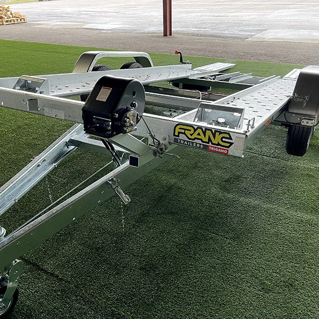 Der Franc PV400 F270 (400×190 cm – zGG 2700 kg) ist ideal für Profis und anspruchsvolle Privatnutzer, die Fahrzeuge bis 2227 kg transportieren möchten. Mit zwei Achsen, V-Deichsel und Torsionsaufhängung bietet er Stabilität, Komfort und Langlebigkeit. Die manuelle Kippfunktion, rutschfeste Auffahrschienen und der kippbare Kotflügel gewährleisten ein sicheres und einfaches Be- und Entladen, selbst bei niedrigen Fahrzeugen. Ausgestattet mit einem automatischen Stützrad, 4 Zurrösen und feuerverzinkten Modulen sorgt er für Sicherheit, Leistung und Vielseitigkeit bei allen Transportanforderungen.