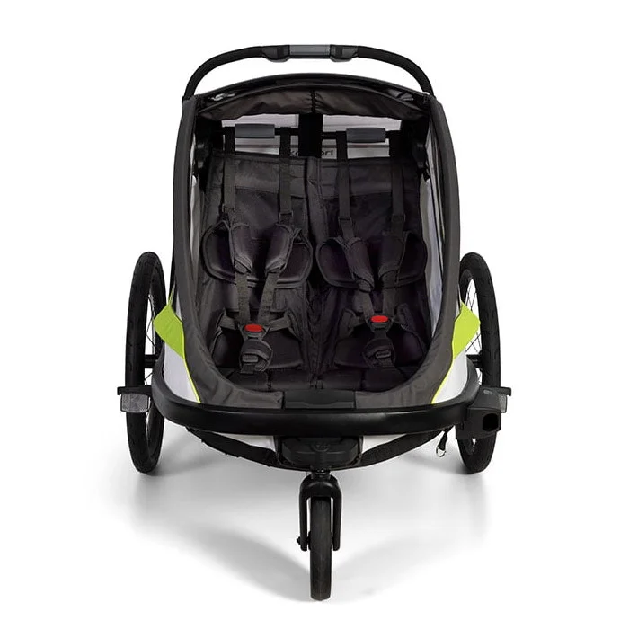 Der Hamax Breeze Fahrradanhänger für 2 Kinder bietet Robustheit, Komfort und Sicherheit für aktive Familien. Mit geräumigen, verstellbaren Sitzen, einem strapazierfähigen Boden und einer Tragfähigkeit von 42 kg sorgt er für stabile und angenehme Fahrten. Der leichte Rahmen und die abnehmbaren Räder erleichtern die Handhabung, während das wasserdichte Dach und die verstellbare Belüftung die Kinder bei jedem Wetter schützen. Multifunktional, lässt er sich dank Twist-Vorderrad und ergonomischem Griff problemlos in einen Kinderwagen umwandeln. Entsprechend den europäischen Normen EN 1888 und EN 15918 ausgestattet, bietet er sicheren Transport mit 5-Punkt-Gurt, Überrollbügel und Stoßfänger. Ideal für städtische Fahrten oder Ausflüge in die Natur – jede Familienfahrt wird angenehm und sicher.