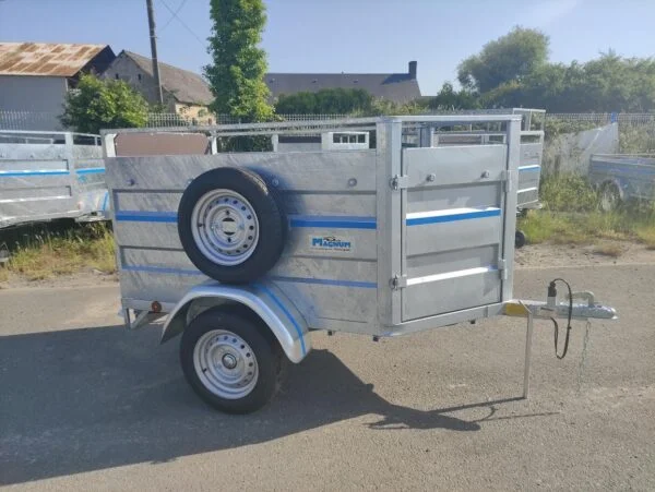 Der MAGNUM 500M2 Viehtransporter ist ideal für den sicheren Transport von Schafen, Ziegen, Schweinen und anderen kleinen Tieren. Der vollständig geschweißte und feuerverzinkte Rahmen, rutschfester Sperrholzboden und hohe Bordwände sorgen für Robustheit, Stabilität und Langlebigkeit. Ausgestattet mit einer Heckklappe als Rampe, einer kleinen Vordertür und einem Stützbein bietet er einfachen Be- und Entladekomfort. ZGG von 500 bis 750 kg, Einzelachse ohne Bremse, Reifen 155/70R13. Optional erhältlich: Plane, Aufsatzbordwände, obere Gitter, Stützrad und Ersatzrad. Eine zuverlässige Lösung für Landwirte und Züchter.