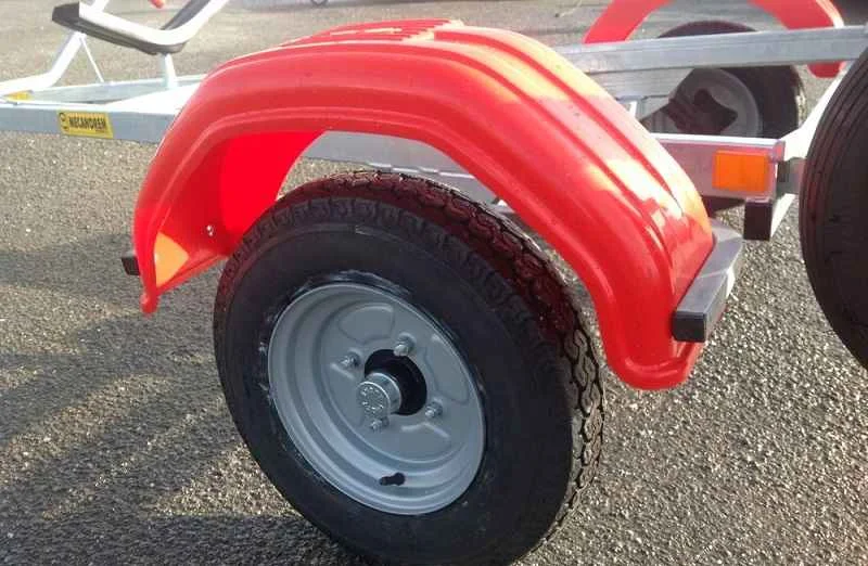 Der Bootstrailer mit Slipwagen für Jollen (zGG 350 kg) erleichtert den Transport und das Wasserlassen leichter Boote wie Laser, 420 oder 470. Der feuerverzinkte Rahmen sorgt für Robustheit und Korrosionsbeständigkeit, während die profilierten Gummiauflagen den Rumpf optimal schützen. Das abnehmbare Warnschild erlaubt die legale Nutzung auf der Straße, und der unabhängige Wagen gewährleistet eine schnelle und sichere Wasserung. Mit Polyethylen-Schutzblechen, Gummifederung und einer Achse mit 350 kg Tragkraft kombiniert dieser Trailer Sicherheit, Wendigkeit und Langlebigkeit – ideal für Segelclubs, Privatnutzer und Wettkämpfe.