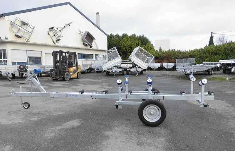 Der Einachs-Bootswagen erleichtert den Transport und das Wasserlassen von Booten auf Privatgeländen und in Häfen. Mit einem PTAC von 1300 kg und einer maximalen Nutzlast von 1000 kg kann er Boote bis 5,6 m sicher handhaben. Die klappbare Konstruktion und der kippbare Deichsel erleichtern das Ein- und Aussetzen, während verstellbare Rollen das optimale Positionieren des Bootes gewährleisten. Aus feuerverzinktem Stahl gefertigt und mit verstärkten Rädern ausgestattet, widersteht er maritimen Bedingungen und bietet eine lange Lebensdauer. Leicht, wendig und pflegeleicht – dieser Wagen bietet Praktikabilität, Sicherheit und Leistung für anspruchsvolle Bootsbesitzer.